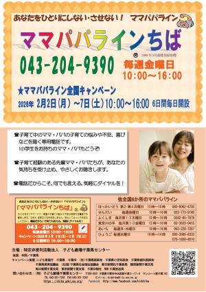 開催日:2026年02月02日(月)~02月07日(土)<br>開催時間:10:00~16:00<br>ママパパライン全国キャンペーン2/2~2/7は毎日お話できます。10:00~16:00<br /> TEL 04...