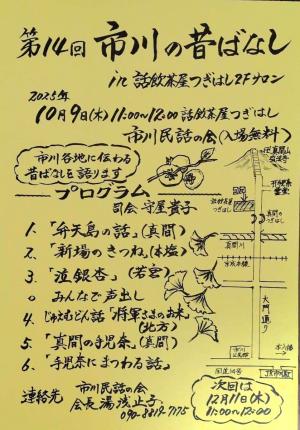 開催日:2025年10月09日(木)<br>開催時間:11:00~12:00<br>第14回市川の昔ばなし in話飲茶屋つぎはし2Fサロン<br /> <br /> 市川各地に伝わる昔ばなしを語ります。<br /> <br /> 日...