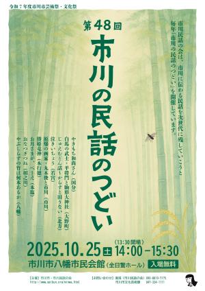 開催日:2025年10月25日(土)<br>開催時間:14:00~15:30<br>市川民話の会は、市川に伝わる民話を次世代に残していこうと、<br /> 毎年「市川の民話のつどい」を開催していま...