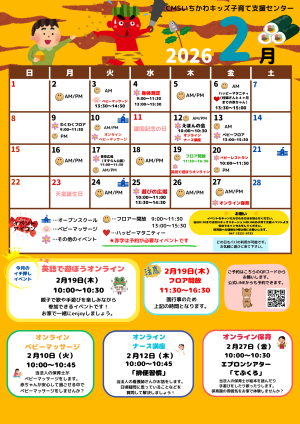 令和8年2月 CMSいちかわキッズ子育て支援センターカレンダー