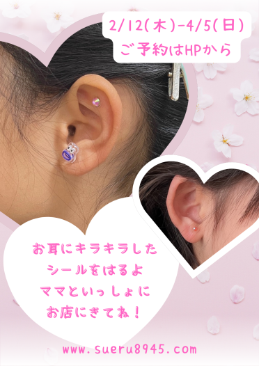 遊ぼう、楽しもう公開日:2026年02月10日【無料】『ハレの日』コース同伴のお友だちに耳つぼジュエリー体験開催日:2026年02月12日(木)~04月05日(日)