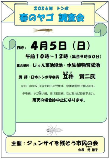 知ろう、学ぼう公開日:2026年03月23日春のヤゴ調査会イベント終了開催日:2026年04月05日(日)