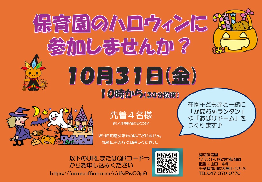 ソラストいちかわ保育園☆公開保育「ハロウィンに参加しませんか?」